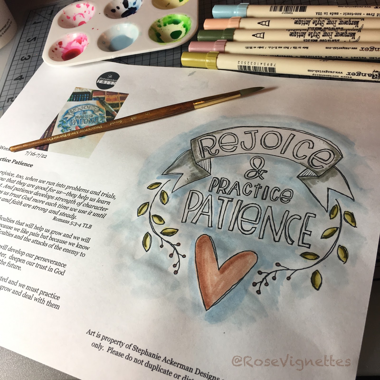 This particular week Stephanie had an exercise to write scripture. So I did one daily. I also added one of her images from the Adornit ArtPlay coloring book. I just cut it out and glued in. I also watercolored sections... just because, I'm all about watercolor now.