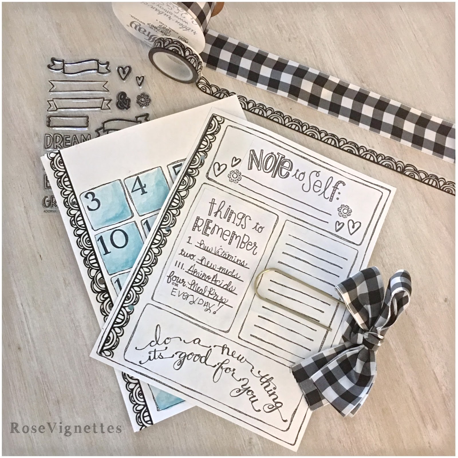 I also washied the edge of the lesson download and hole punched so that I could place it in that week.